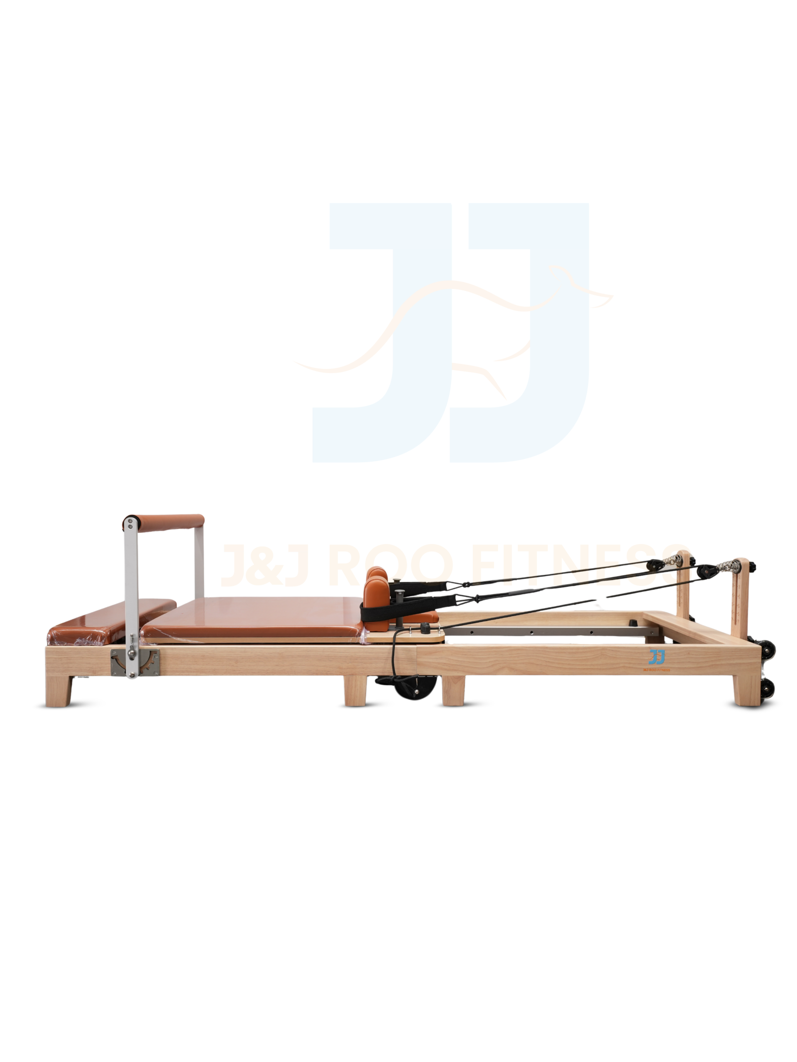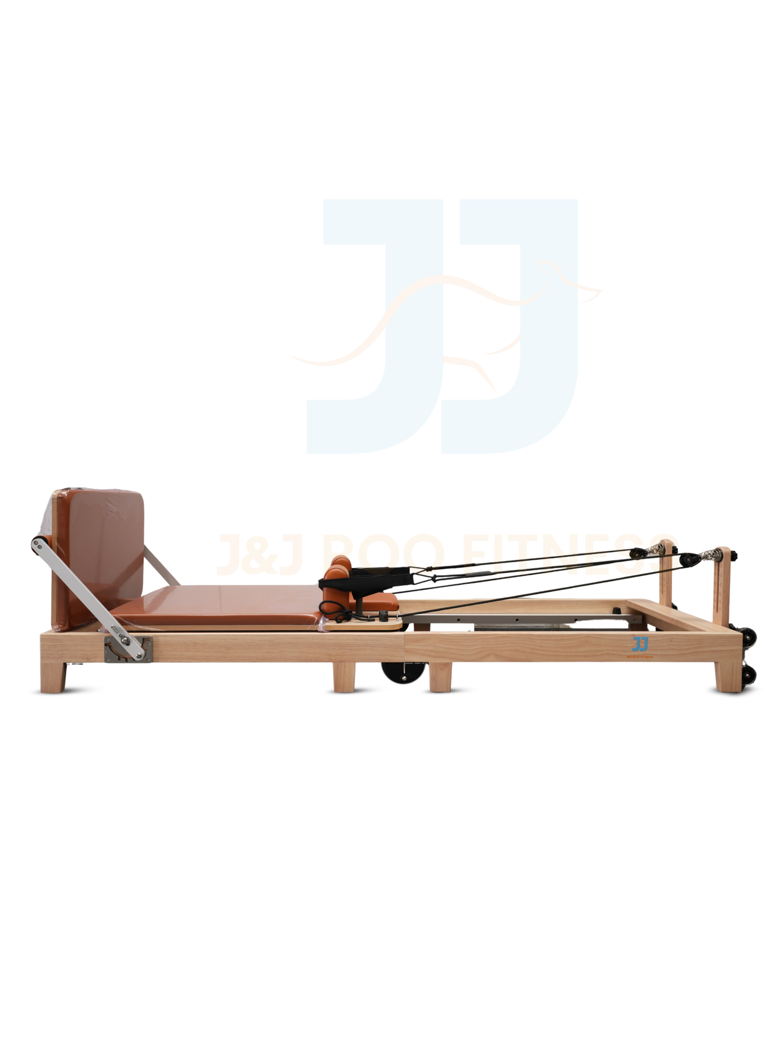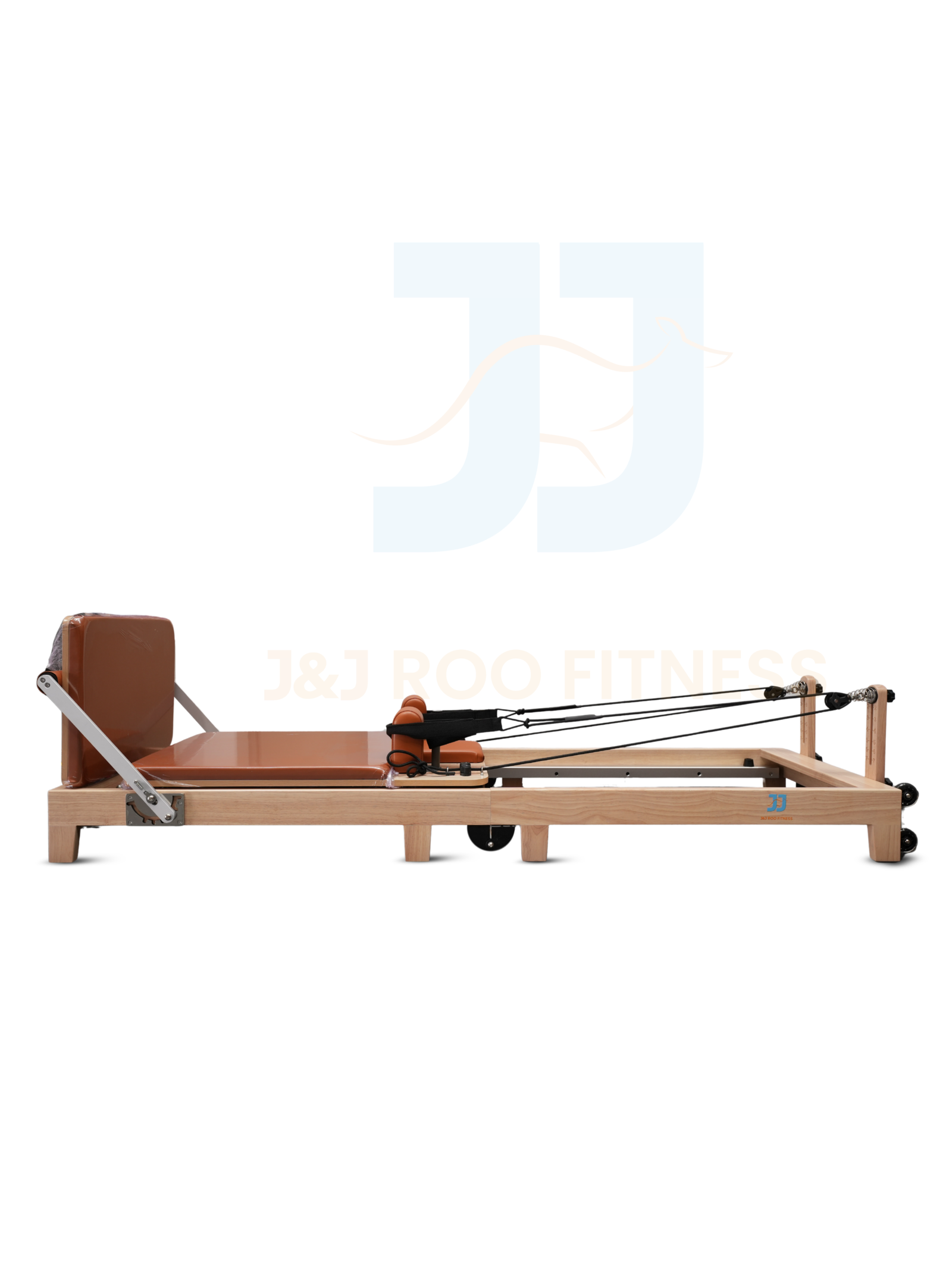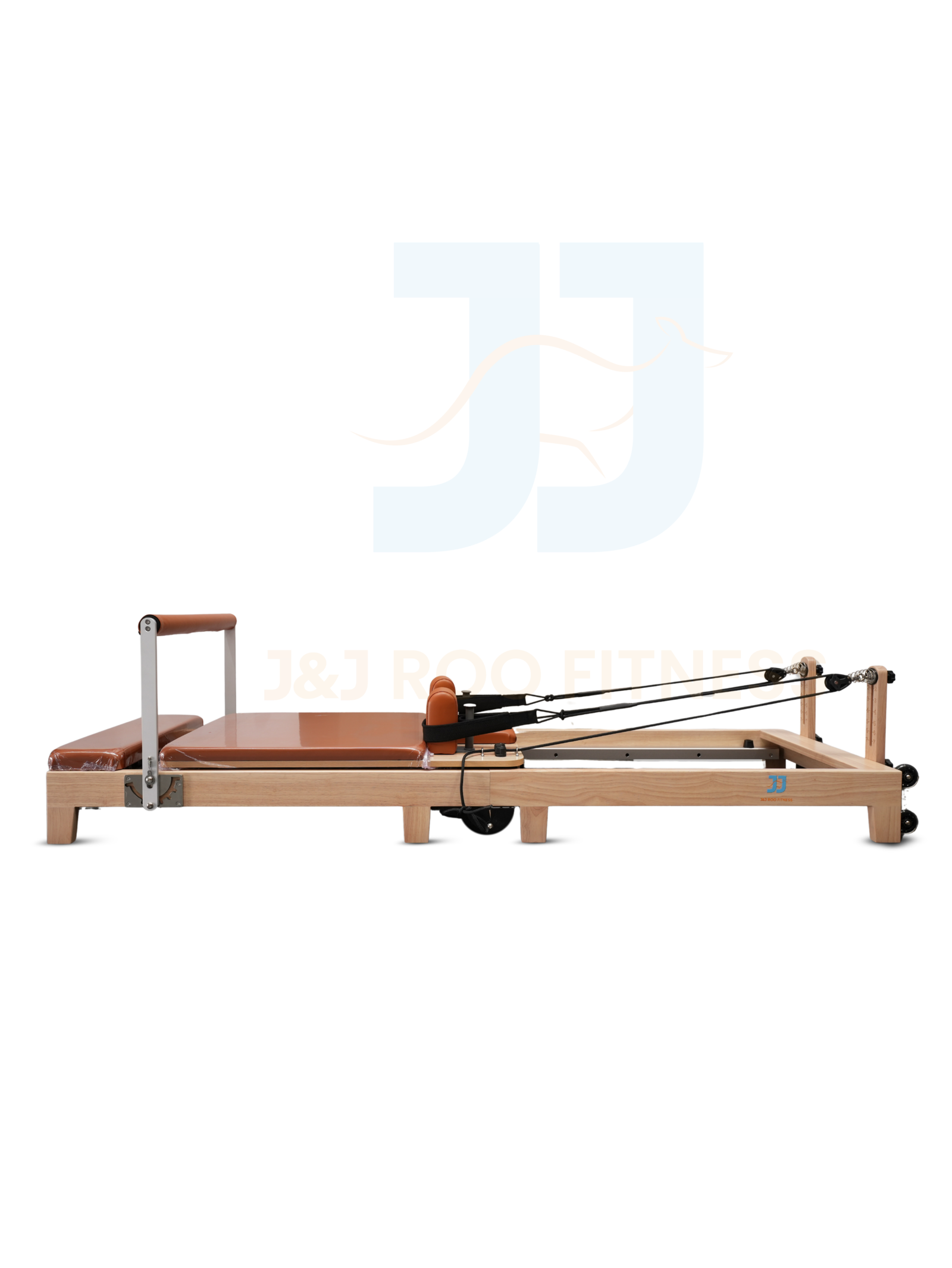 Experience full-range Pilates workouts at home with the Premium Foldable Wood Pilates Reformer from J & J Roo Fitness.