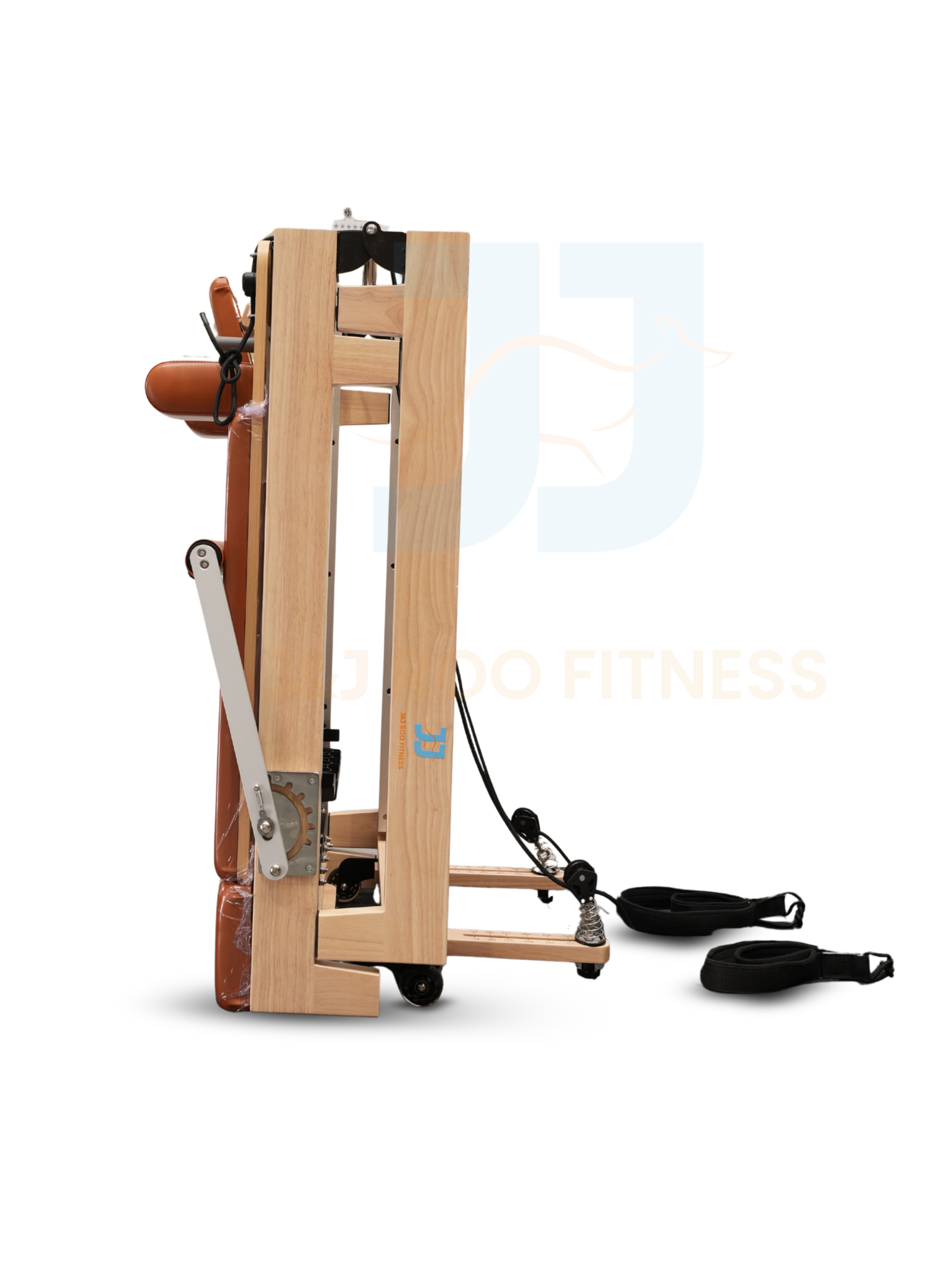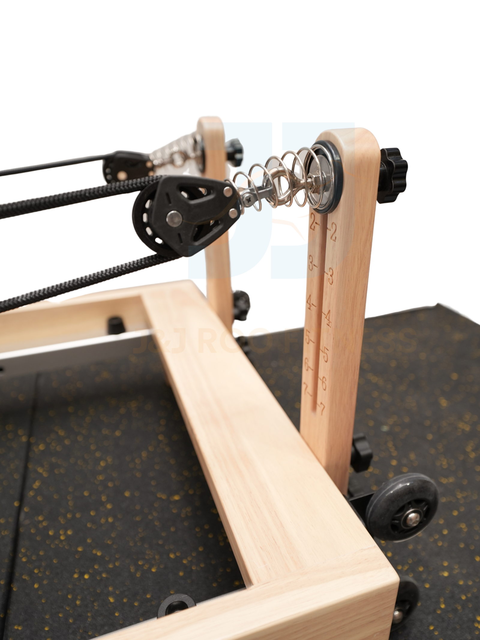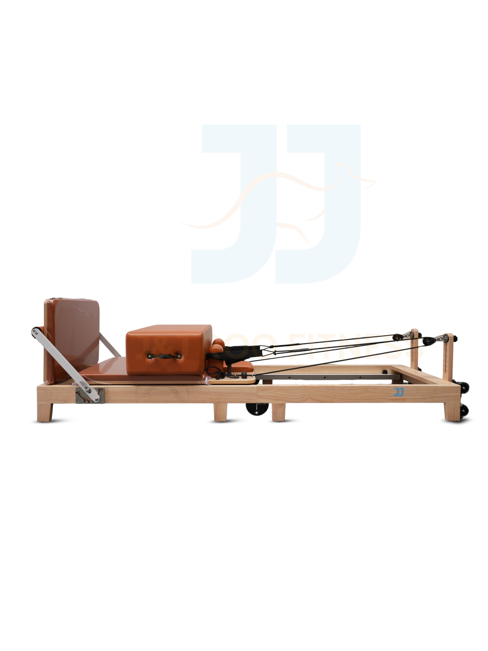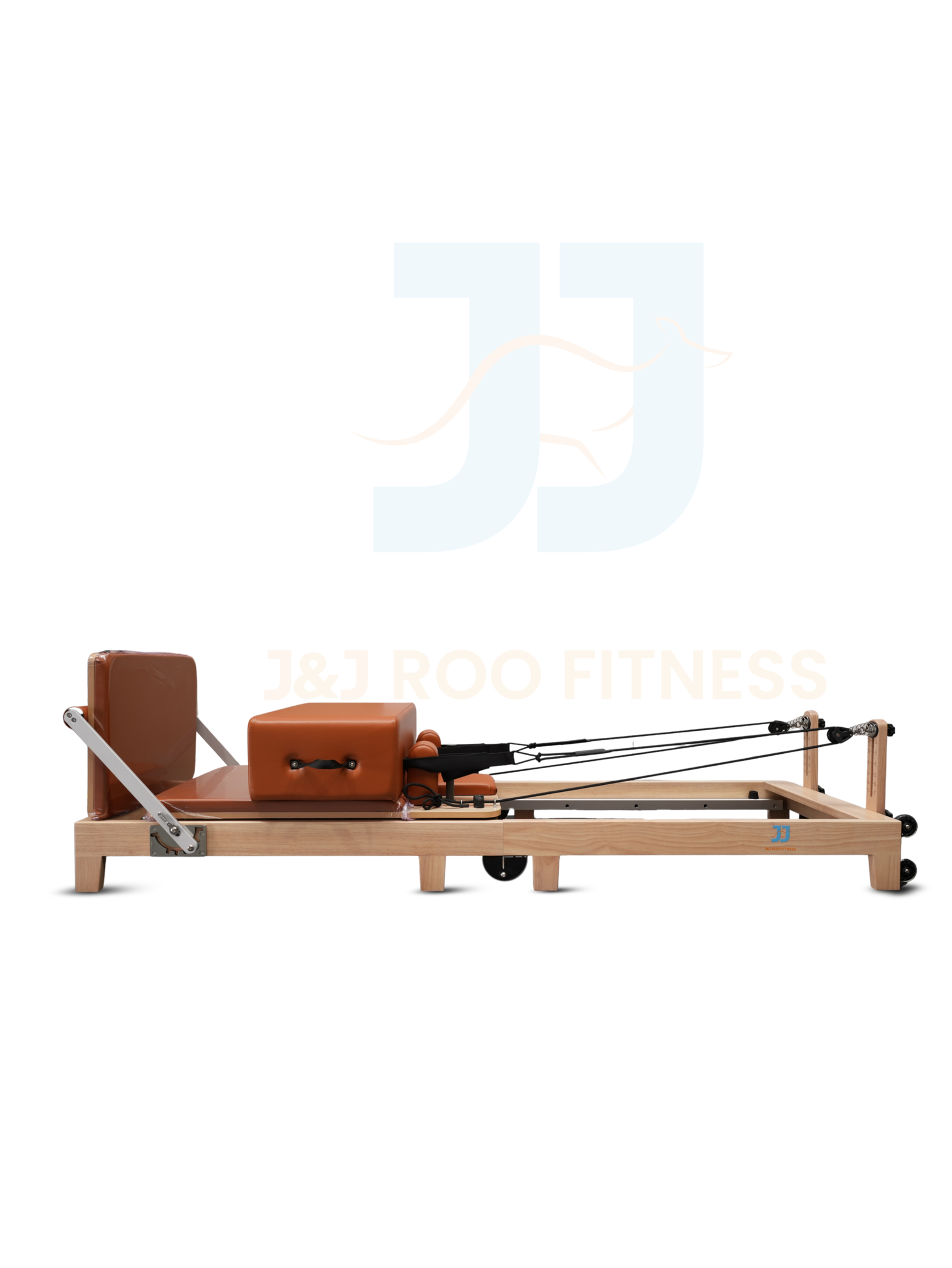 Experience full-range Pilates workouts at home with the Premium Foldable Wood Pilates Reformer from J & J Roo Fitness.